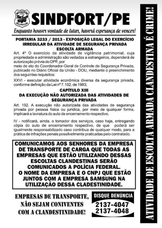 OS VIGILANTES DA ESCOLTA ARMADA ESTÃO SENDO PREJUDICADOS POR ESSE CRIME