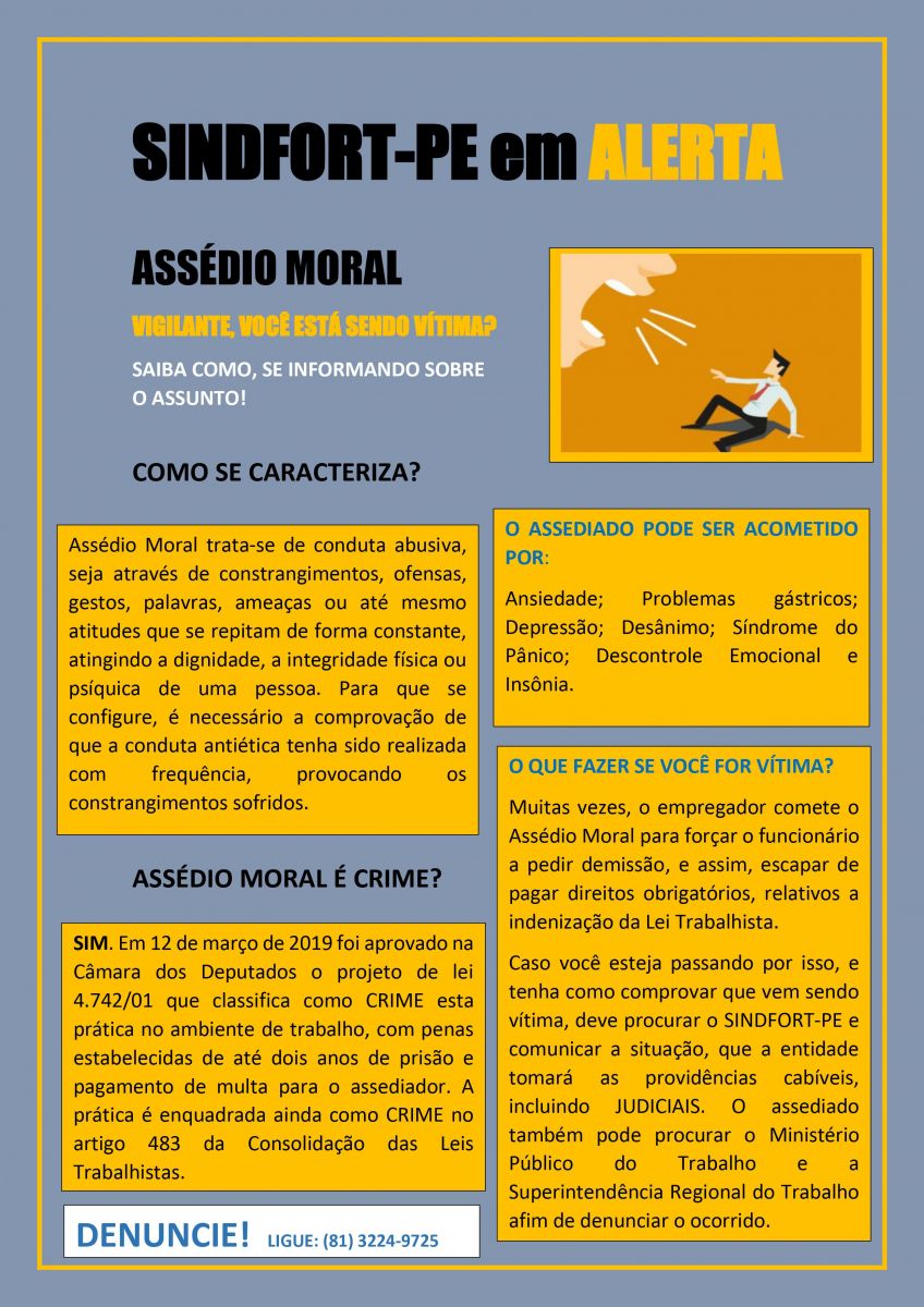 Procure o SINDFORT-PE, o Ministério Público ou demais órgãos de proteção à integridade do trabalhador; Só não deixe ninguém lhe diminuir, menosprezar ou desrespeitar.