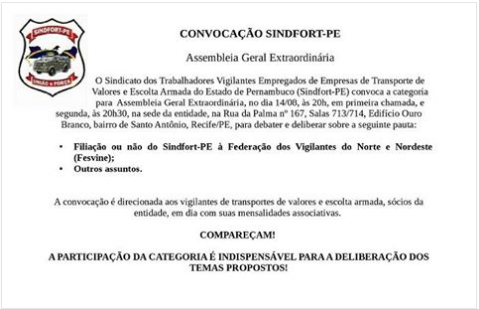 SINDFORT-PE: CONVOCAÇÃO PARA ASSEMBLEIA GERAL EXTRAORDINÁRIA!