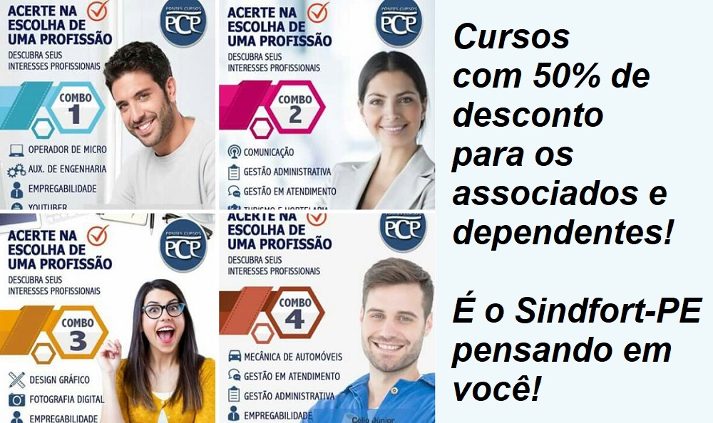 A PCP Pontes Cursos Brasil, especializada em cursos presenciais e a distância, classificados como livres, de qualificação e aperfeiçoamento profissional, está oferecendo cursos para os associados do Sindfort-PE, e seus dependentes, com 50% de desconto.