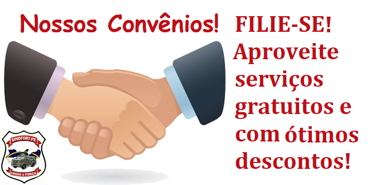 E o Sindfort-PE não para! Com o intuito de oferecer o melhor aos filiados, vem ampliando o leque de convênios com vários serviços ofertados com descontos especiais. Já são muitas parcerias fechadas para beneficiar a categoria nas áreas de lazer, educação e saúde. E novos convênios estão sendo firmados para favorecer os associados do sindicato. Não fique de fora dessas vantagens. FILIE-SE e ganhe descontos e até atendimentos gratuitos em vários dos serviços conveniados com a entidade sindical!