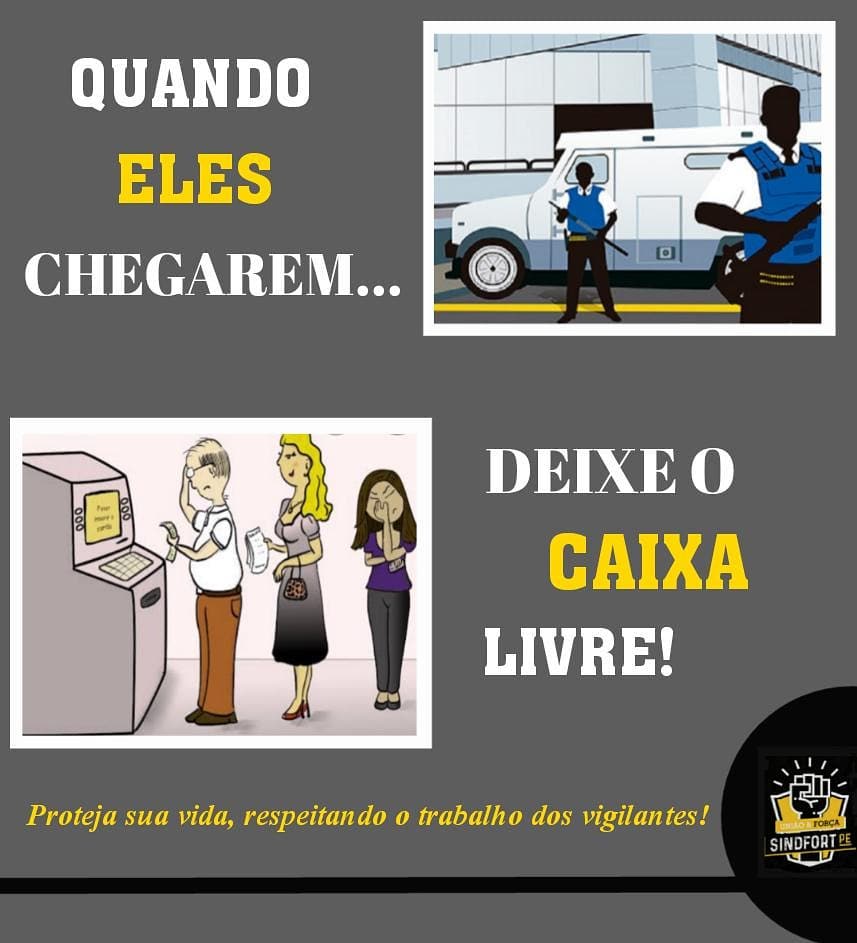 Portanto, RESPEITE o trabalho dos vigilantes. DEIXE OS CAIXAS LIVRES E SE AFASTE ENQUANTO ELES CONCLUEM O TRABALHO.