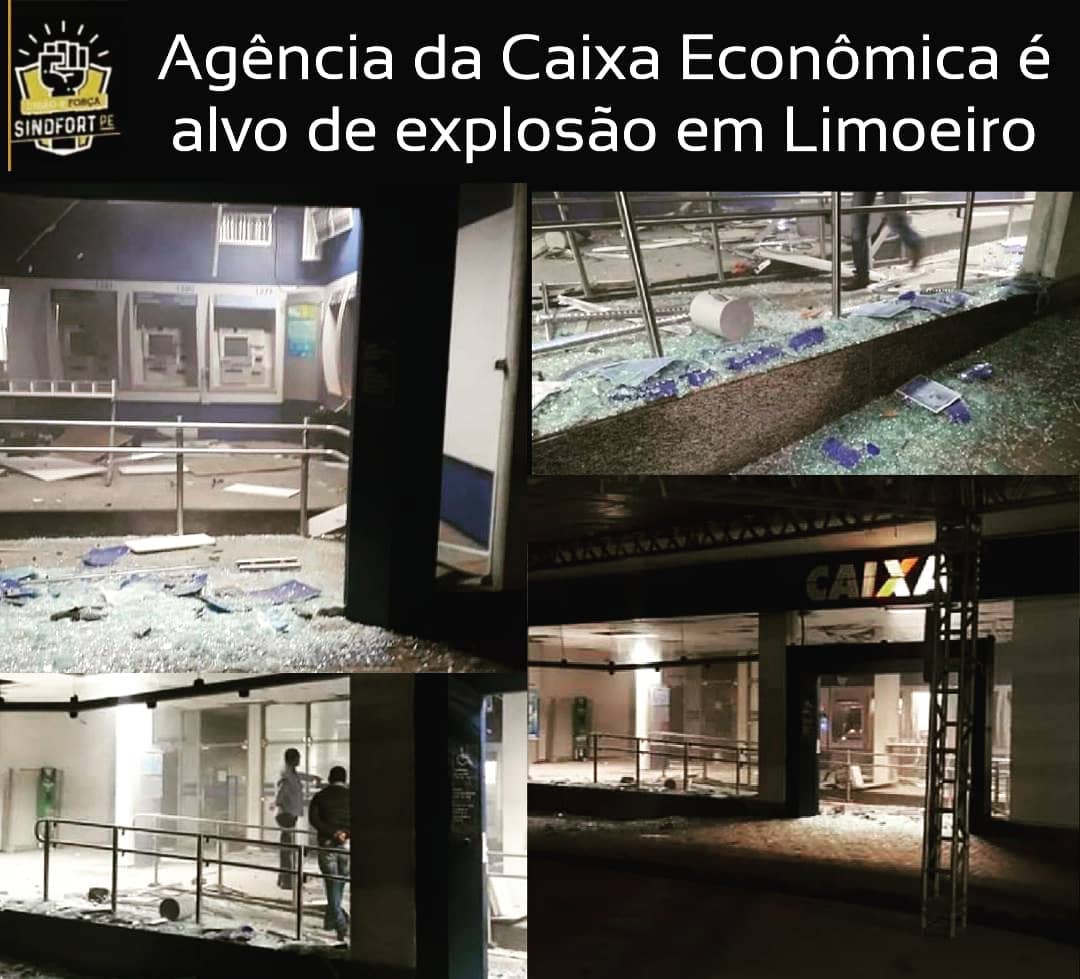 Uma agência da Caixa Econômica Federal no município de Limoeiro, no Agreste do estado, foi alvo de uma explosão na madrugada desta quarta-feira (1). De acordo com a Polícia Militar (PM), as equipes tomaram conhecimento do ocorrido às 4h, e após a investida os suspeitos fugiram do local.